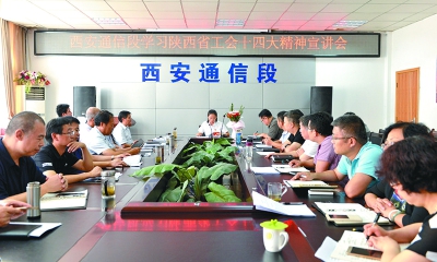 近日,中国铁路西安局集团公司西安通信段召开省工会十四大精神宣讲会,向机关干部传达大会精神。与此同时,该段还组织人员到一线车间班组进行巡回宣讲。赵琰 蒋涛 摄